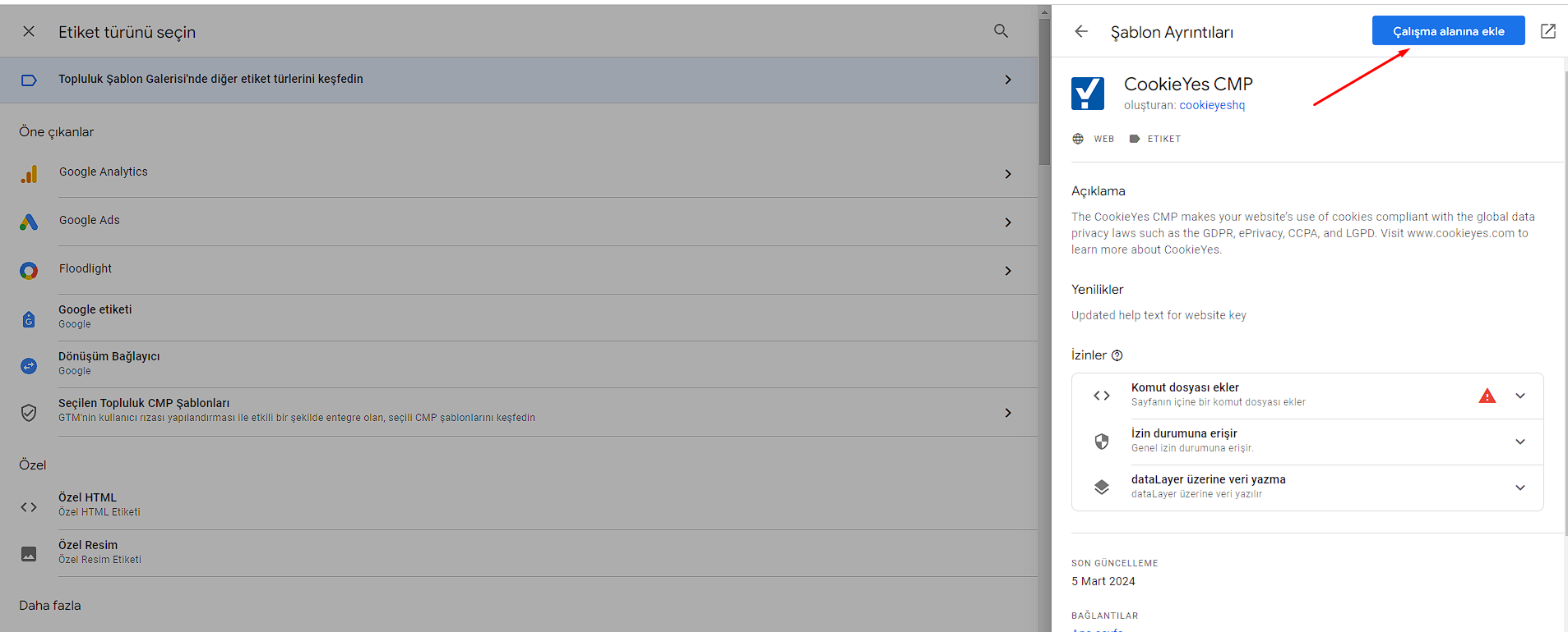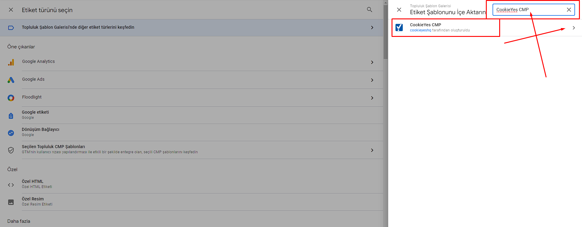 4.Görselde aratacağımız nesnenin adı : CookieYes CMP