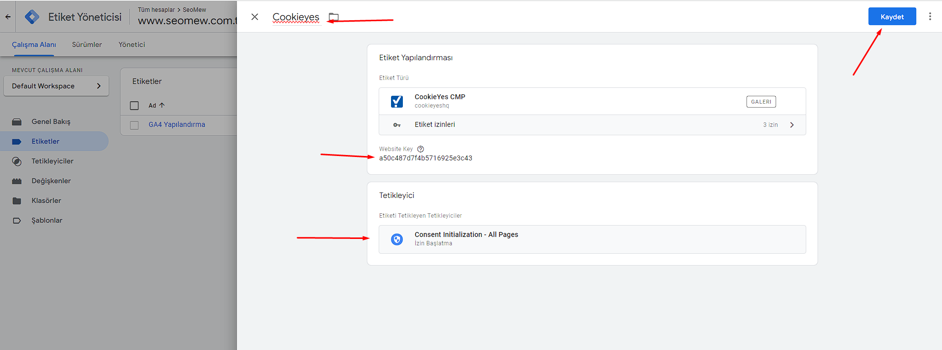Bu işlemi yapabilmemiz için Google ‘ın Kullanıcı rızası yönetim platformu entegrasyonları için yetkilendirdiği firmalardan dilediğinizi kullanabilirsiniz. Biz daha önce kullandığımız ve basit olduğu için CookieYes firmasını kullanacağız.