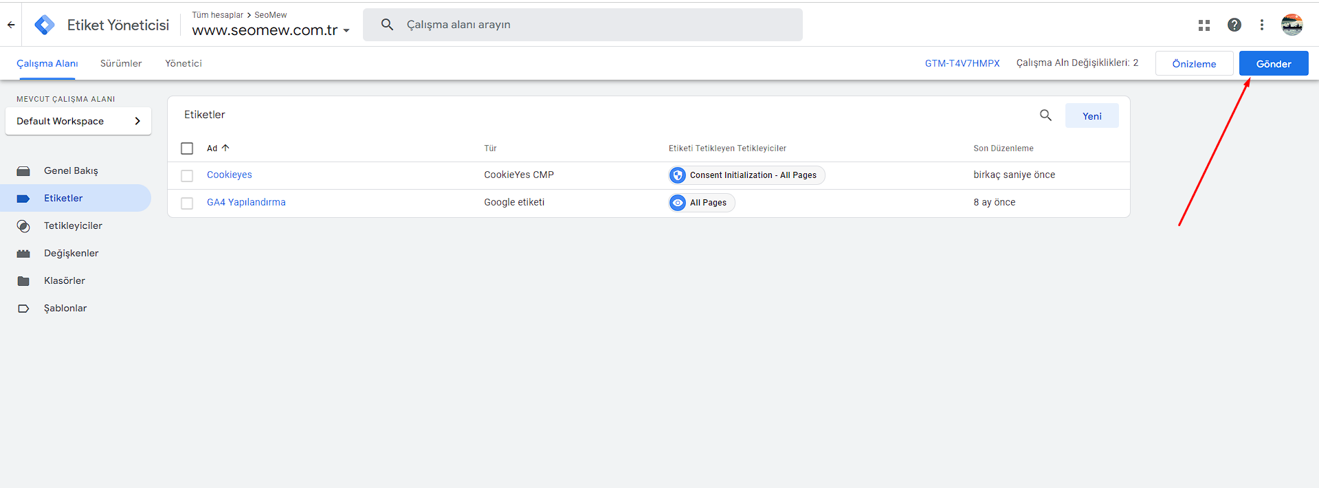 GTM hesabımıza giderek aşağıdaki adımları sırasıyla yapıyoruz.